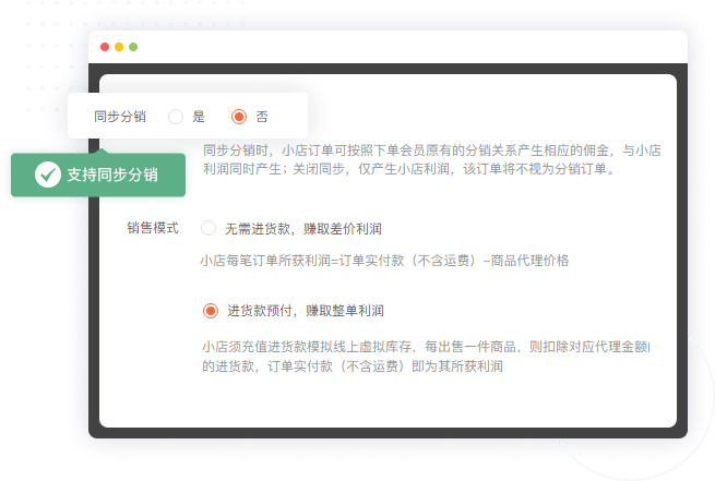 小店订单可以按照下单会员原有的分销关系产生相应的佣金,与小店利润同时产生。