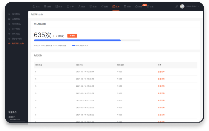 可自定义商品导入次数套餐和价格,支持设置首次购买时