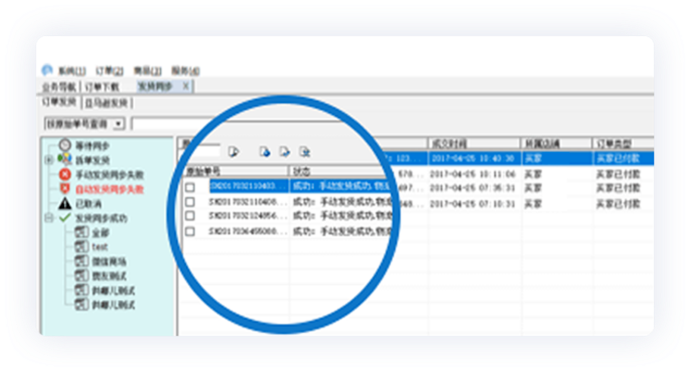 网店管家软件可同步发货订单的原始单号、成交时间、订单类型、发货时间、收件人、发货单号及发货方式。