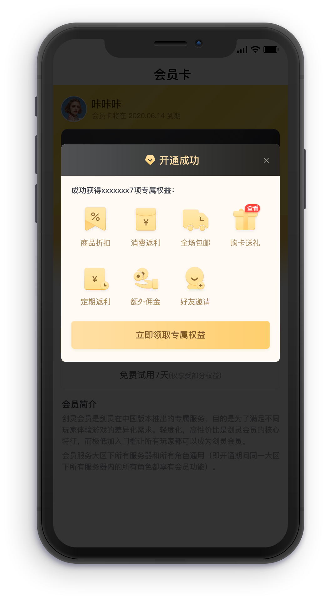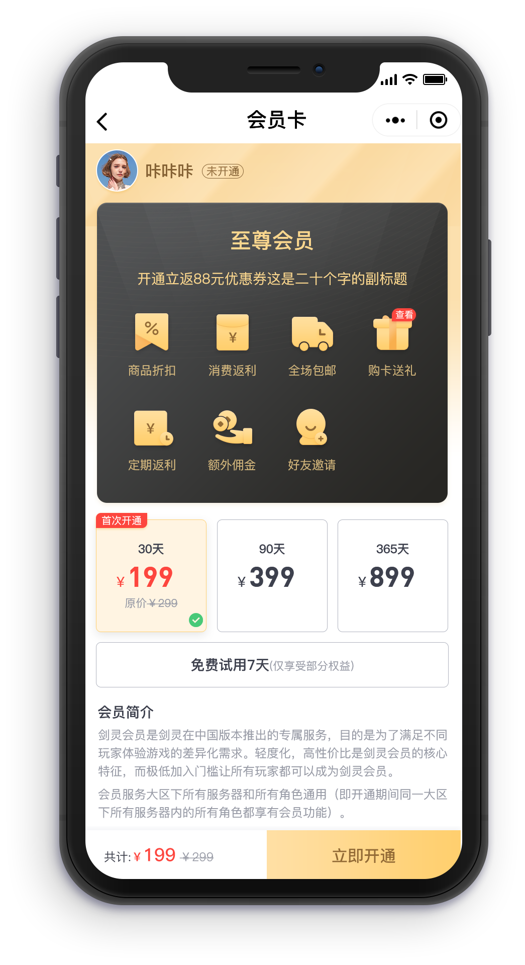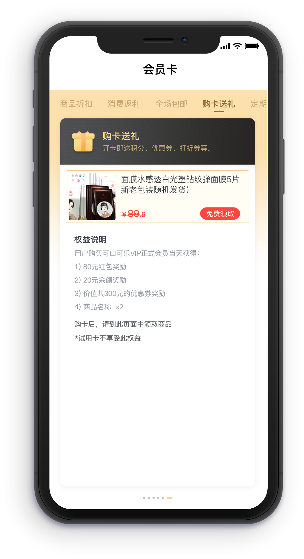 付费会员卡页面展示