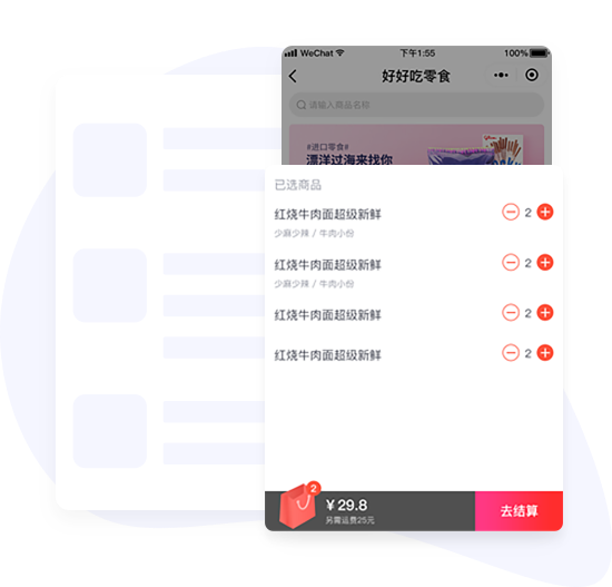 快速购买购物车和商城购物车数据同步,无需跳转,一键购买。